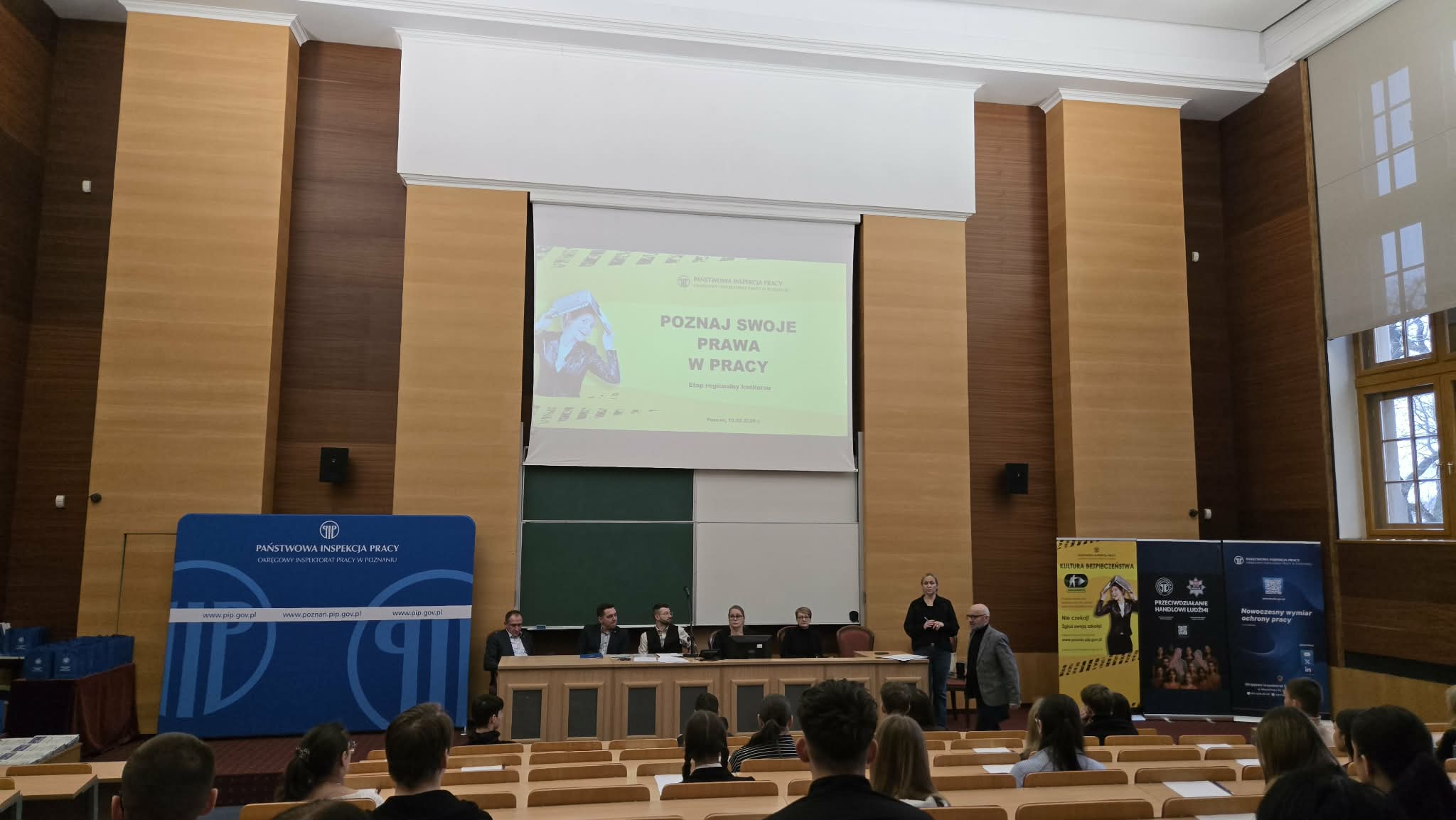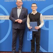W dniu 10 lutego 2026 roku uczniowie 5 klasy technikum mechatronicznego Hubert Jędrzejczak oraz Łukasz Glinkowski reprezentowali naszą szkołę podczas etapu regionalnego konkursu „Poznaj swoje prawa w pracy”, organizowanego przez Państwową Inspekcję Pracy w Poznaniu.
