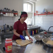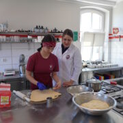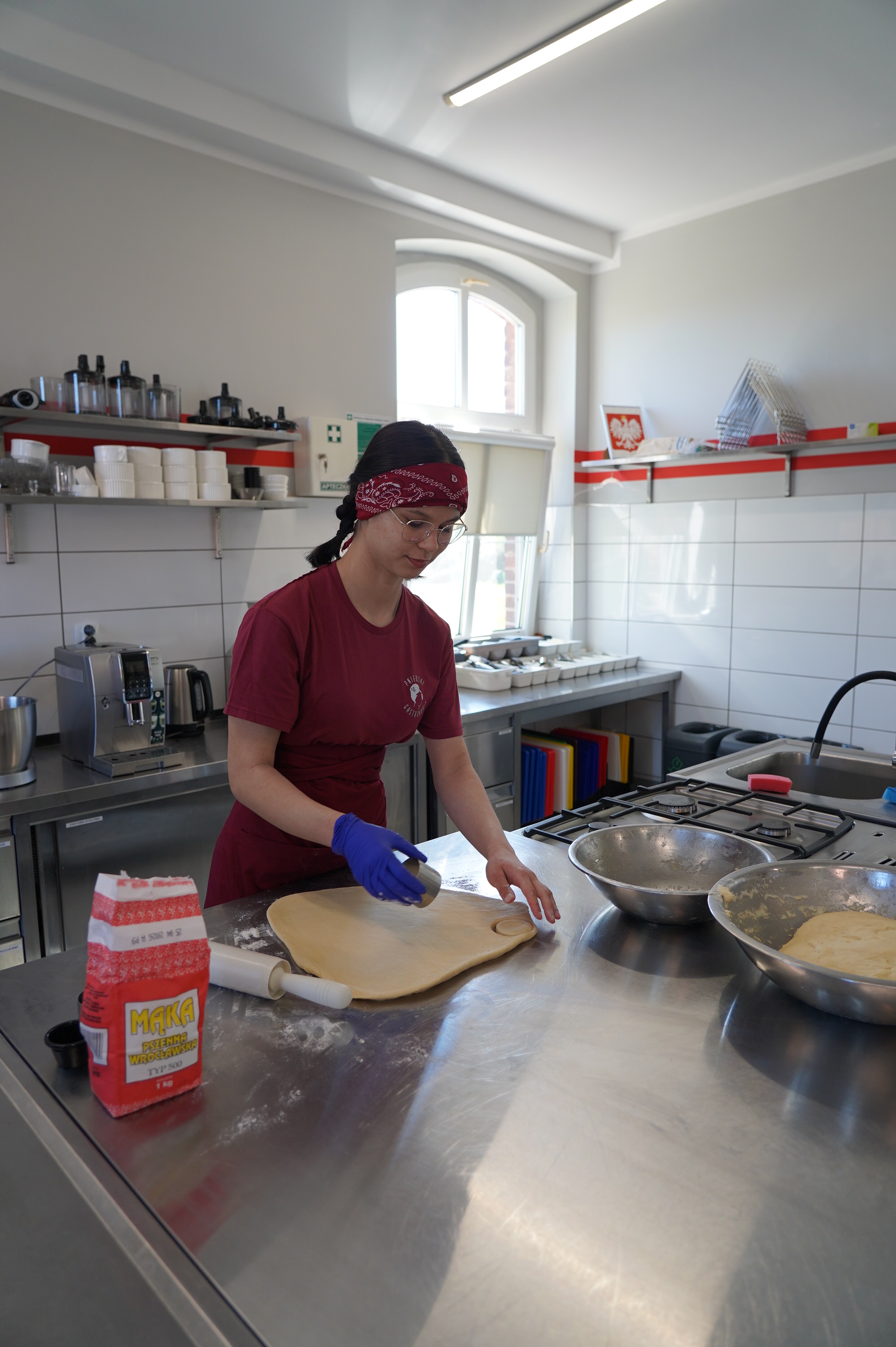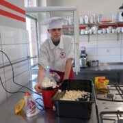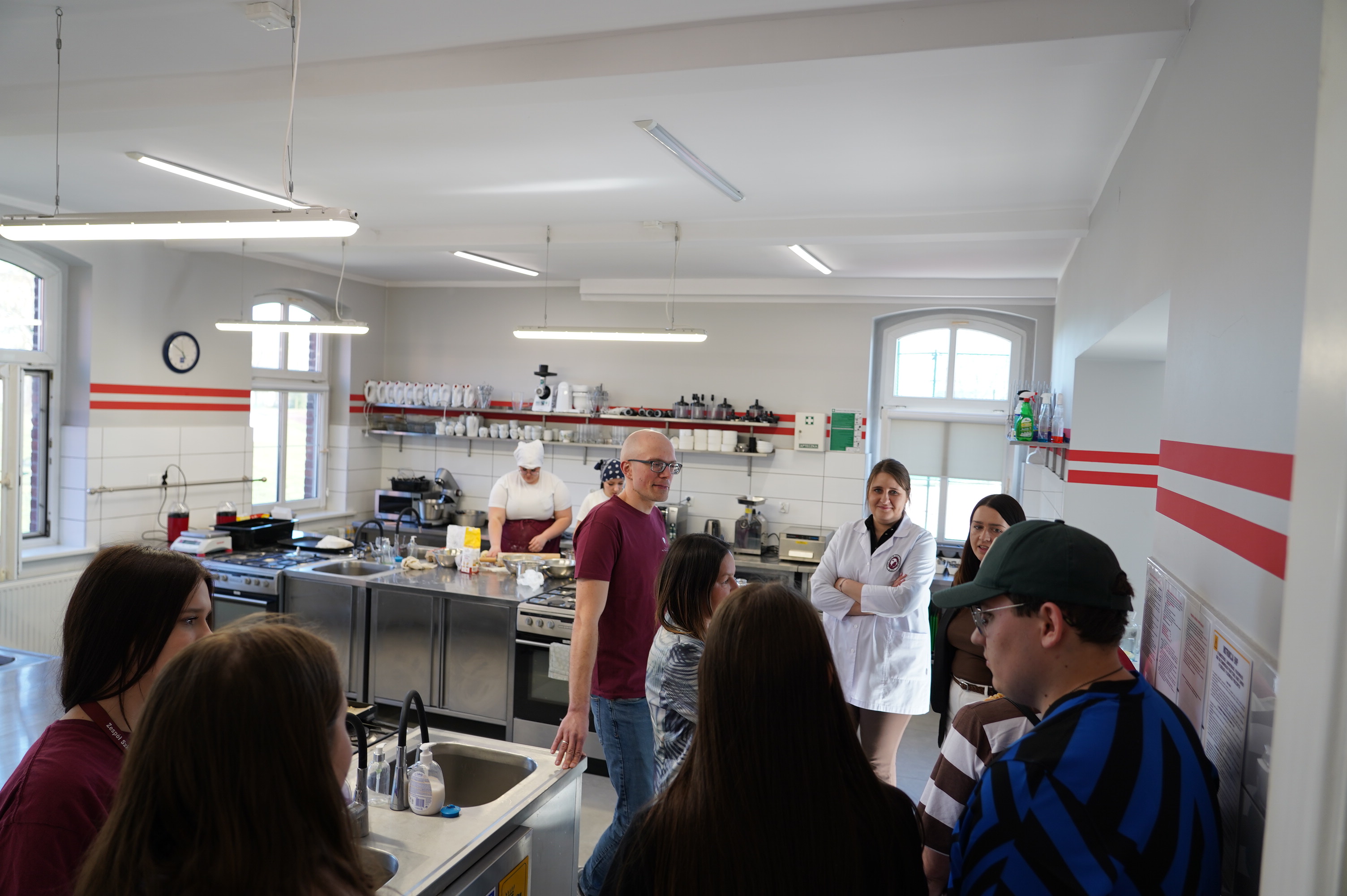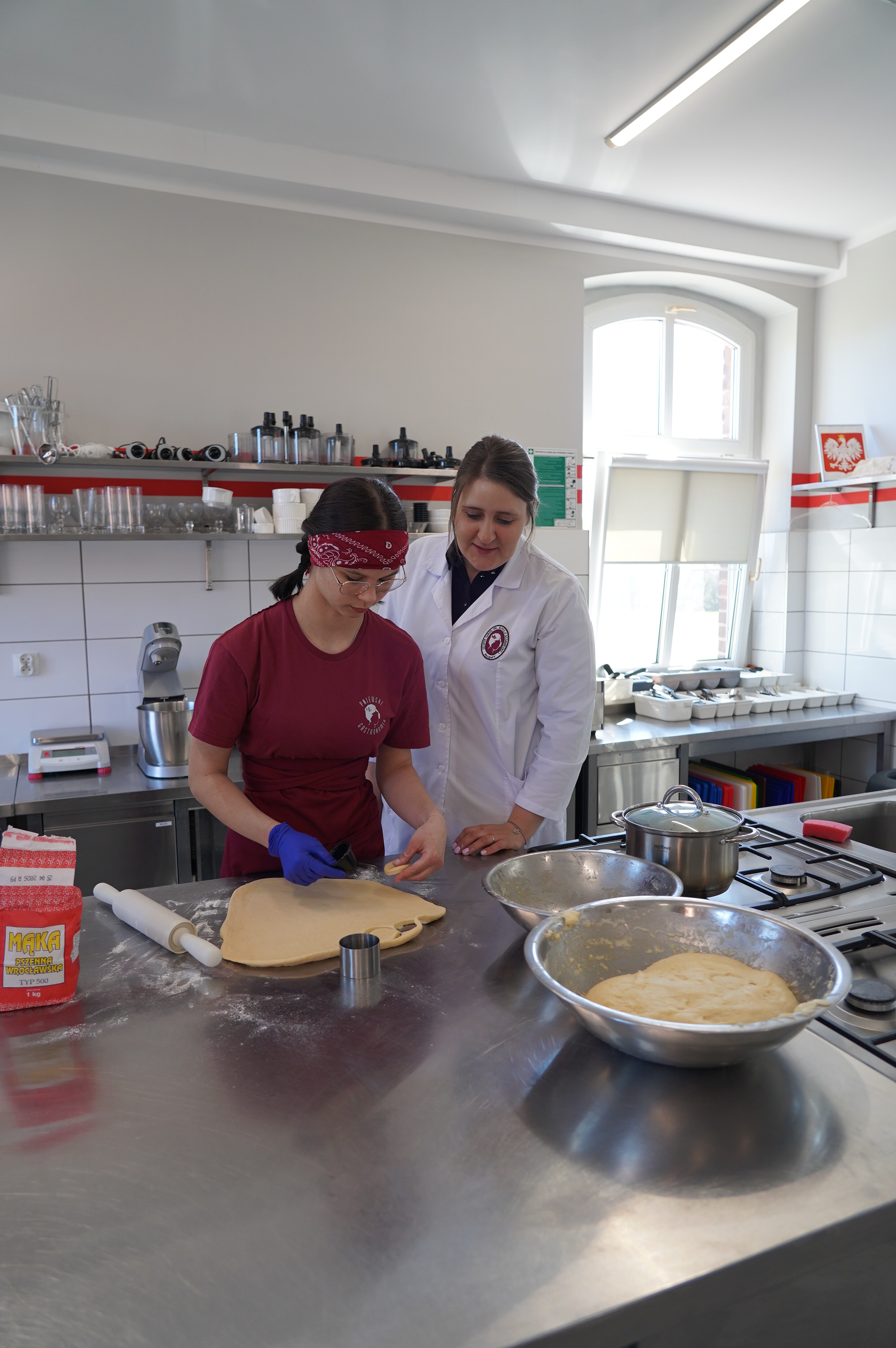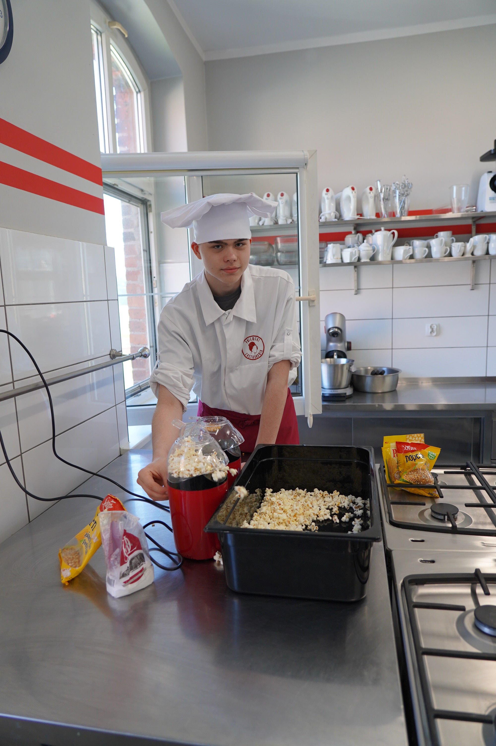 Przy ul. Wolności, w pracowni gastronomicznej działy się rzeczy pyszne! Nasi kucharze i technicy żywienia na bieżąco wypiekali drożdżówki, których zapach przyciągał każdego fana dobrego jedzenia. Można było podyskutować o kierunkach gastronomicznych i sprawdzić, jak profesjonalnie wygląda nasz strój roboczy, a w dalszą drogę zabrać świeży popcorn 😊