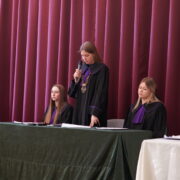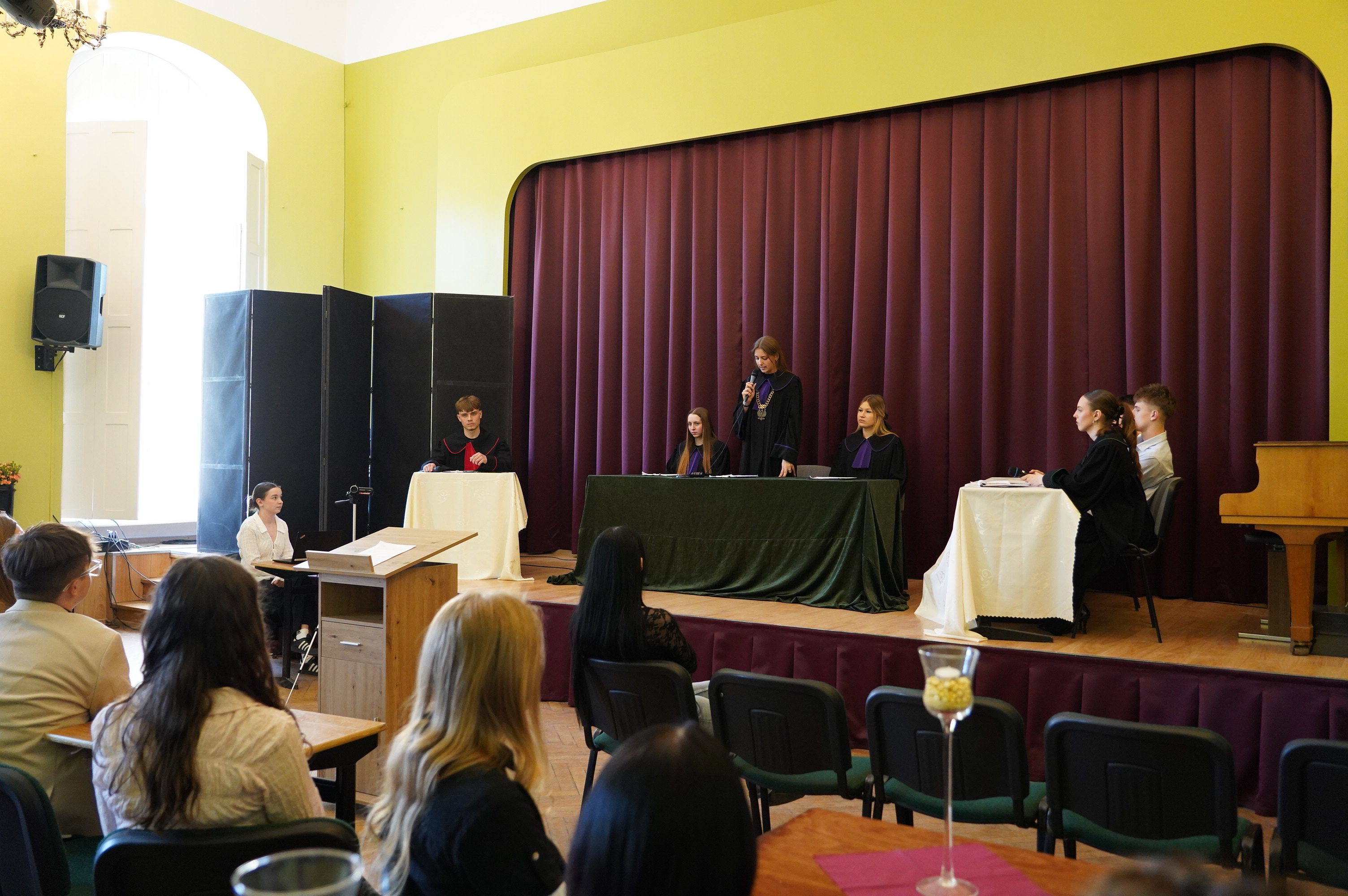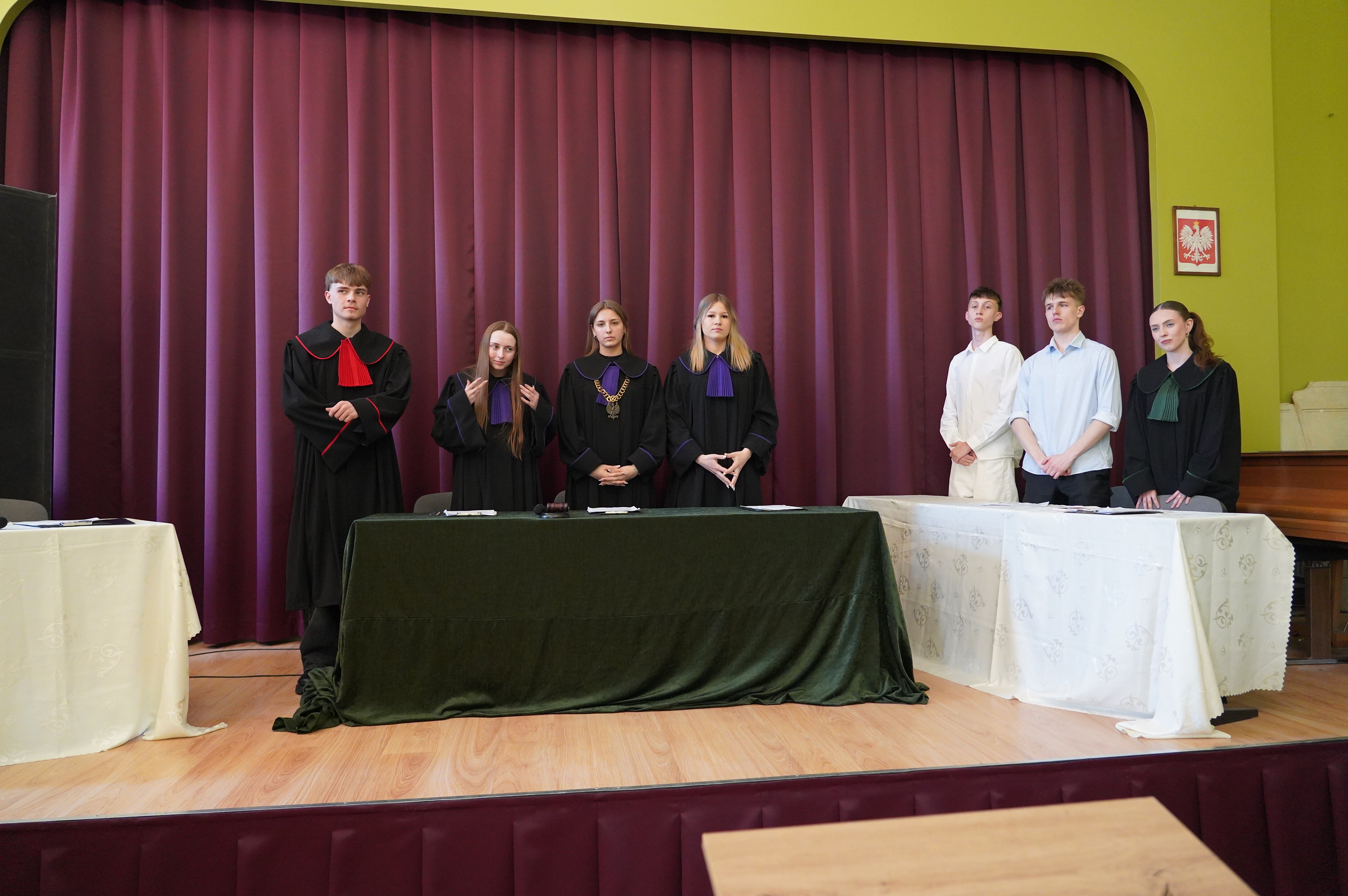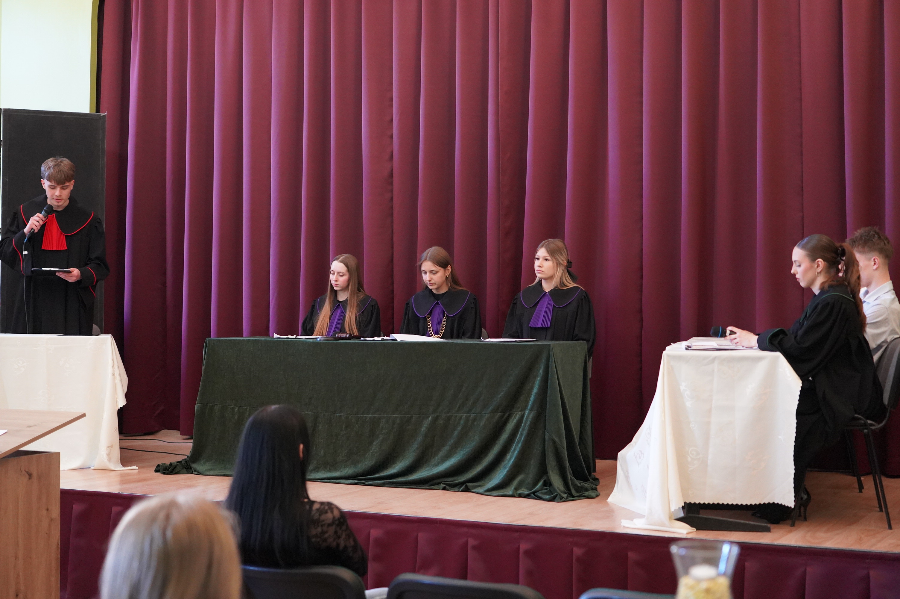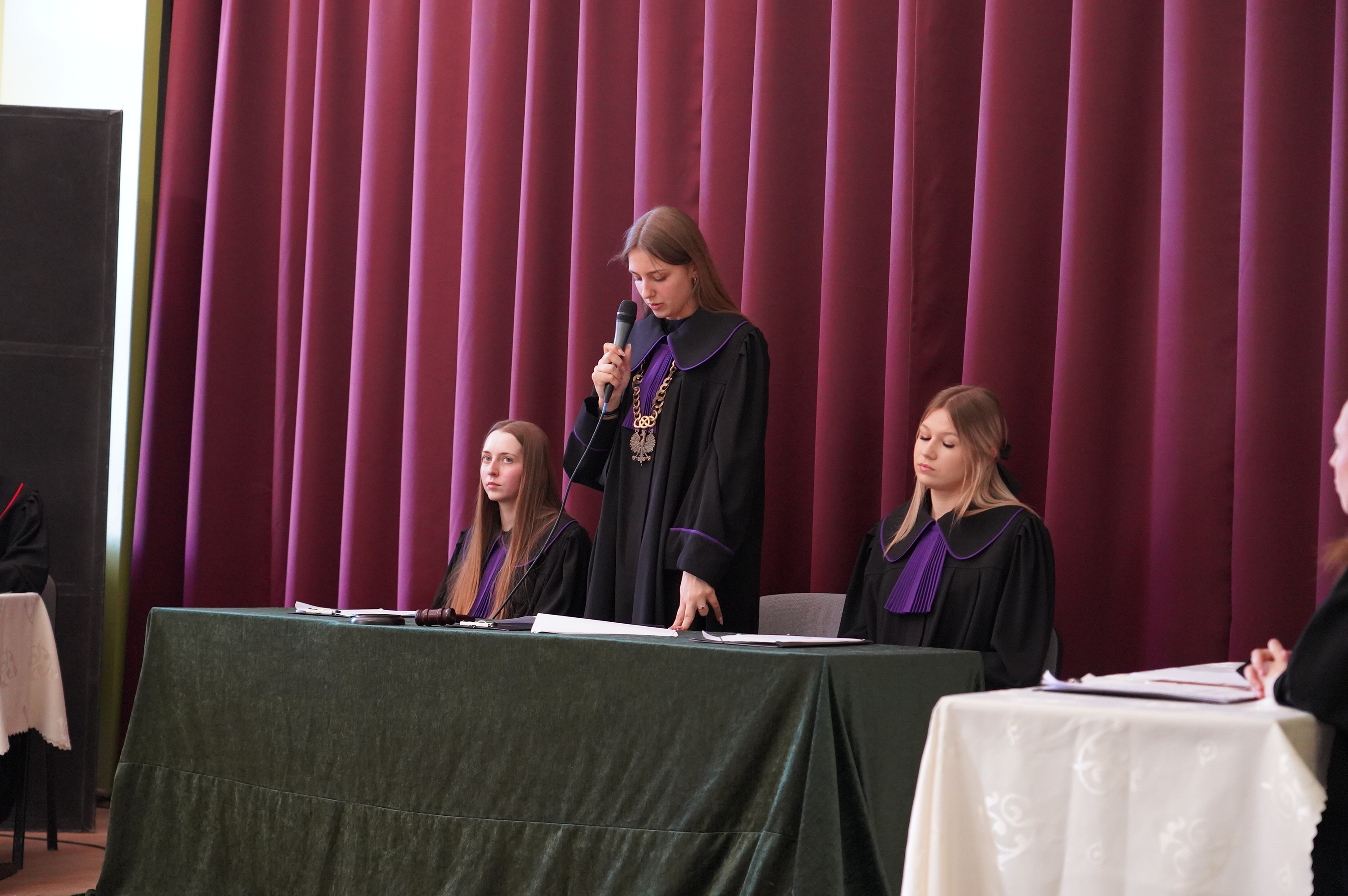 • sąd w Auli: Przyszli prawnicy mogli wziąć udział w zaaranżowanej rozprawie sądowej i poczuć ciężar sędziowskiej togi.