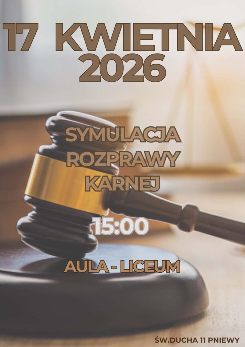 Anna Maria Wesołowska zagości w pniewskim Ogólniaku! Przyjdź na rozprawę sądową przygotowaną przez humanistów z klasy 3C pod opieką Ewy Genge-Korpik. Przyjdź i zostań z nami na kolejne 4 lata!