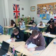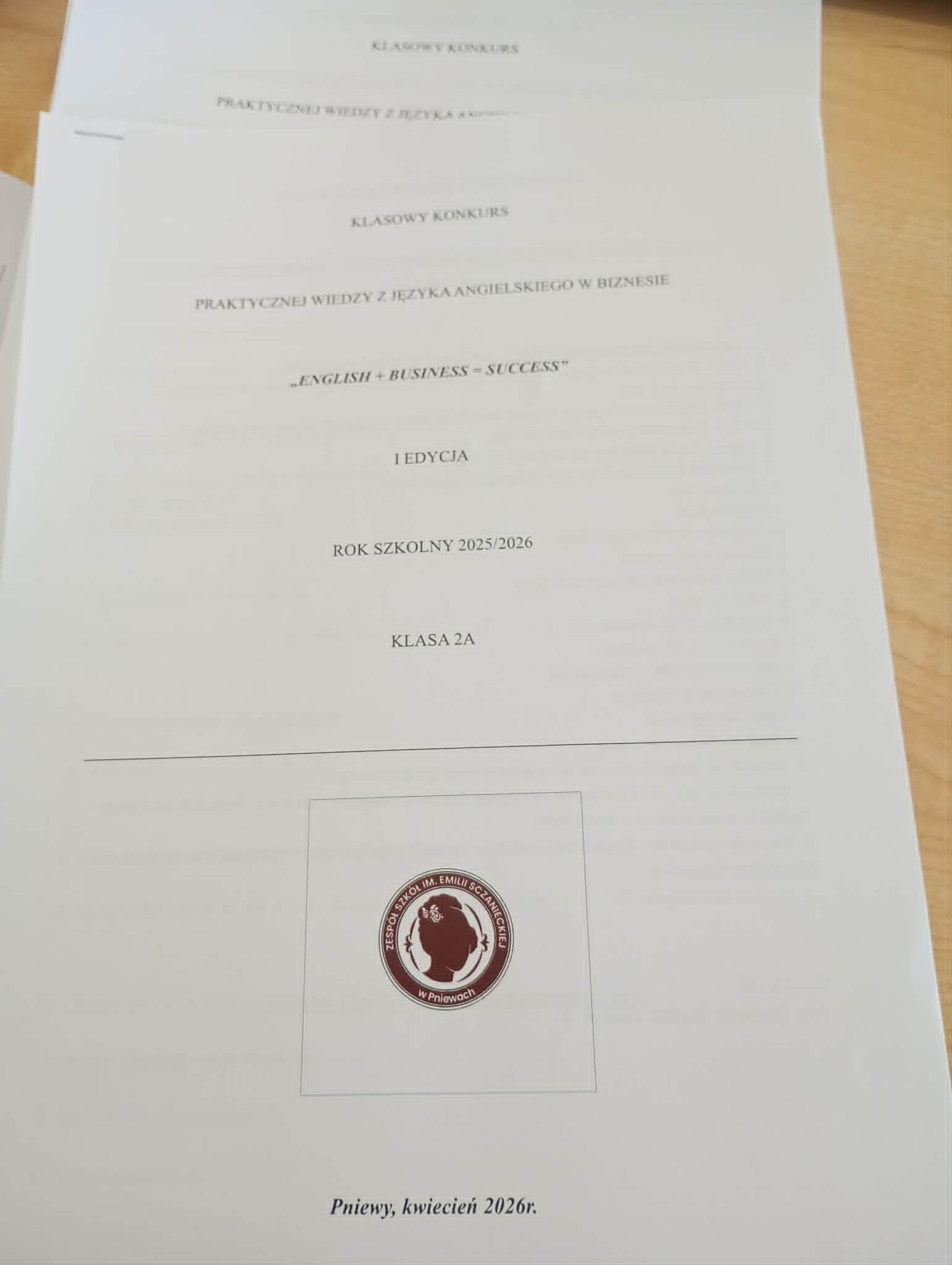 W poniedziałek 27 kwietnia uczniowie klasy 2A realizujący przedmiot uzupełniający język angielski w biznesie przystąpili do I edycji klasowego konkursu pt. „English+Business=Success”. Konkurs otworzyła wicedyrektor p. Elżbieta Bosy dodając kilka słów motywacji uczestnikom konkursu oraz przypomnienia jak ważna w dzisiejszym świecie jest znajomość języka angielskiego, a w szczególności w aspekcie specjalistycznym.
