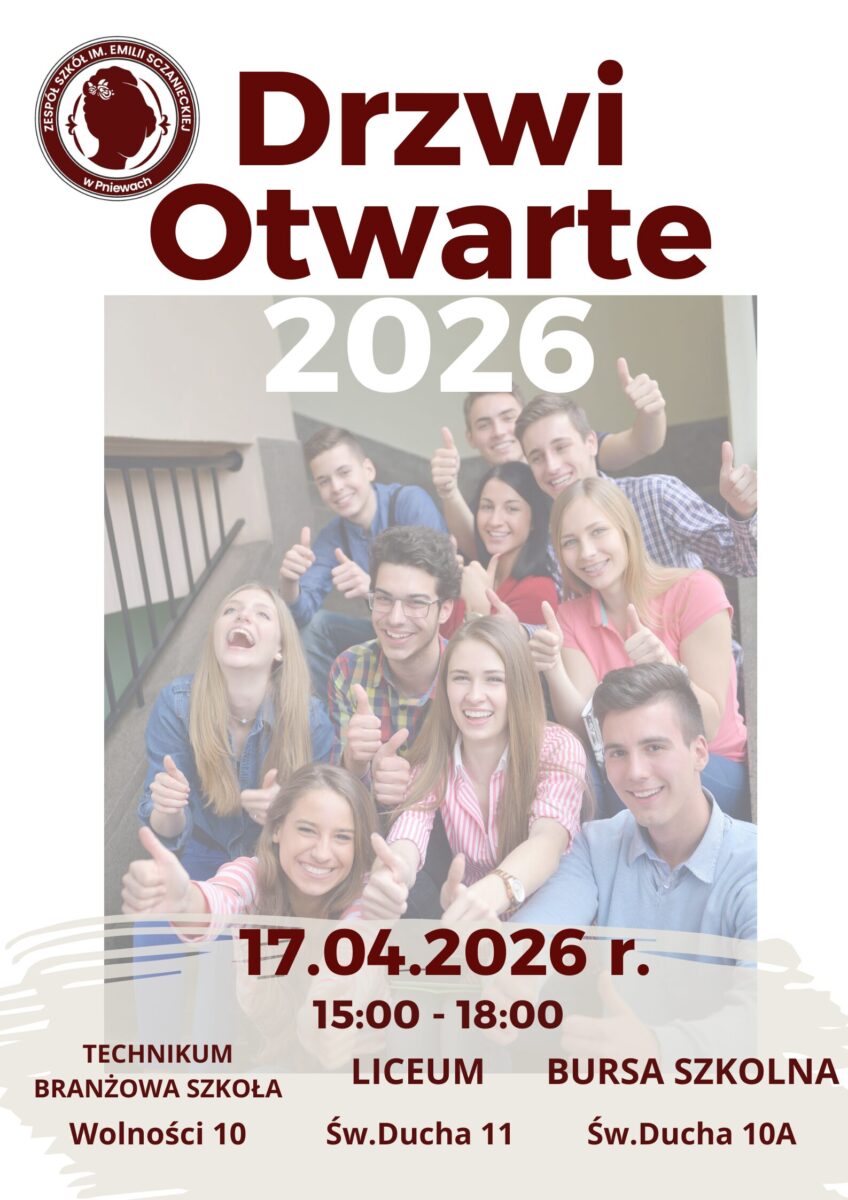 Wszystkich tych, którzy nie mogli być z nami na Targach, oraz tych, którzy chcą zobaczyć szkołę „od kuchni”, serdecznie zapraszamy na DRZWI OTWARTE 17 kwietnia 2026 r.