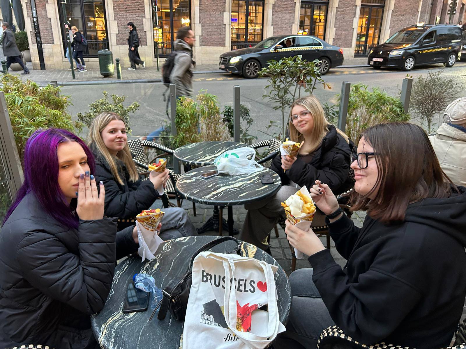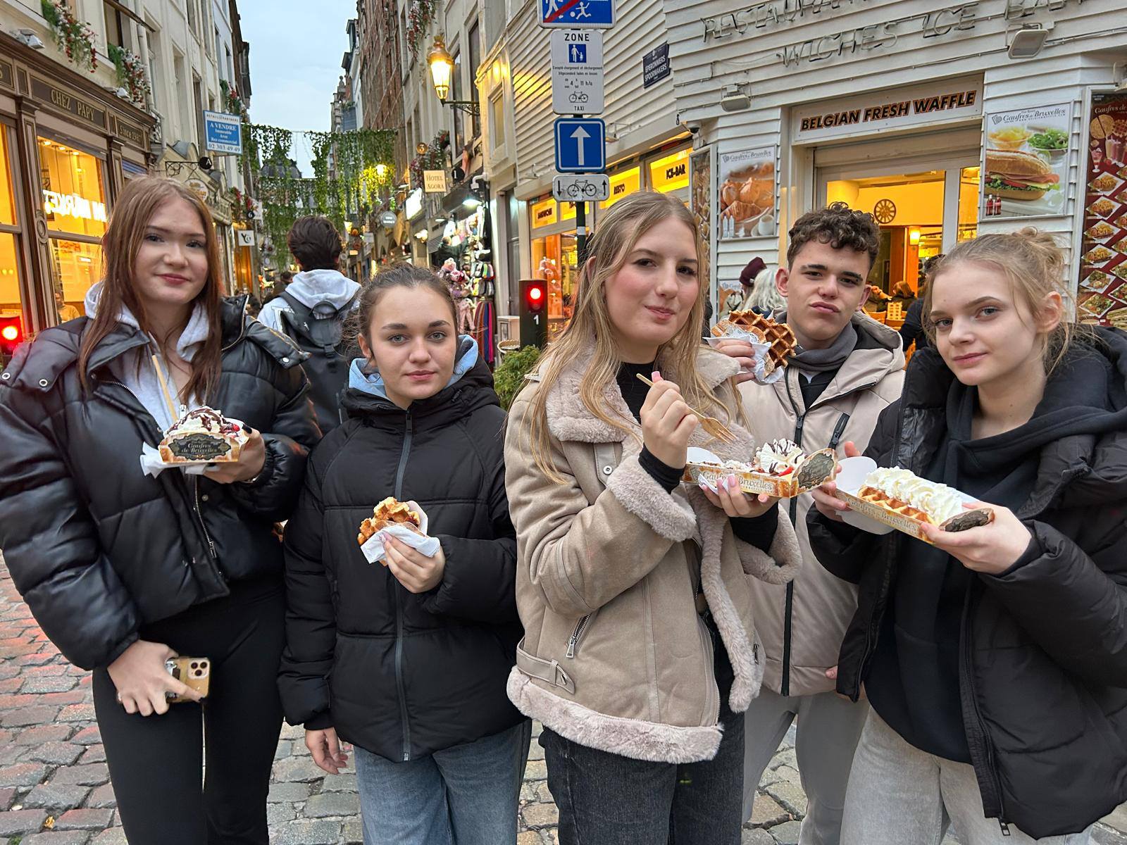 Nie zabrakło również okazji do spróbowania lokalnych przysmaków, takich jak belgijskie frytki czy gofry. Uczniowie mieli też możliwość praktykowania języka angielskiego podczas rozmówek przygotowanych przez anglistę pana prof. Dominika Muchajera.