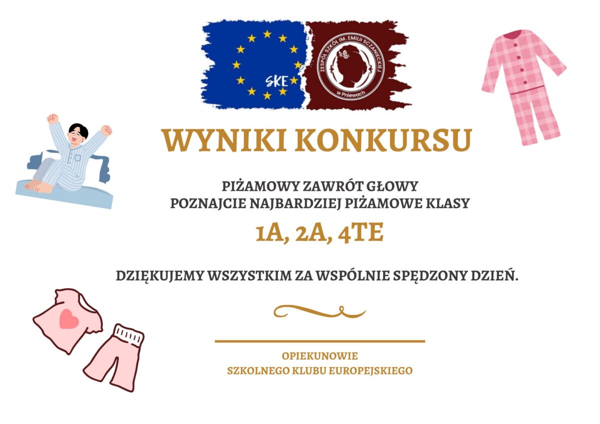 W dniu dzisiejszym w naszej szkole odbył się dzień w piżamie przygotowany przez Szkolny Klub Europejski.