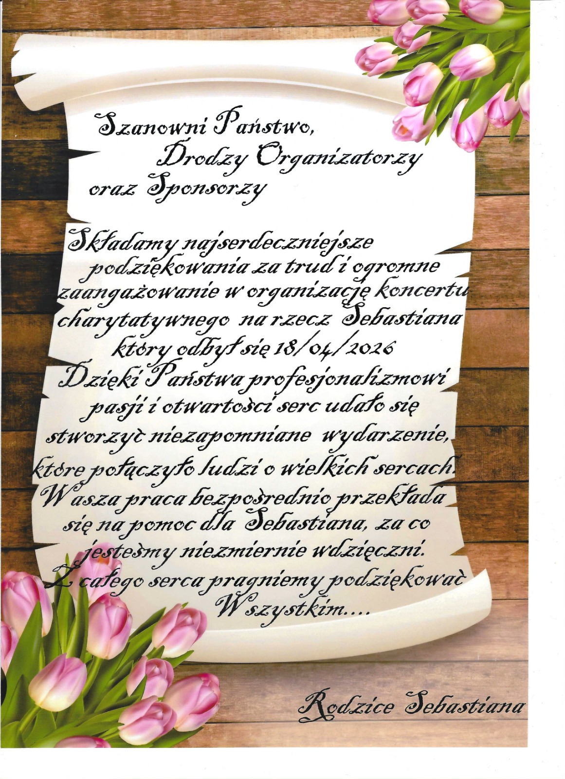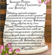 I na zakończenie dziękuję tym, których nie było widać na scenie, ale ich wsparcie umożliwiło realizację koncertu. Mowa o sponsorach. A wśród nich: Art Deco Damian Świtała, AB Studio fryzur stylista fryzur Agata Błajet, Centrum Estetyki Monika Straśko, Fotograf Pniewy Rafał Guzowski, JANPOL Jan Czepczyński, Paweł Ludek szef kuchni w Olandii, Lobelia Pniewy, PHU Torez Zbigniew Torchała, STAMLER Marcin Stelmaszyk.