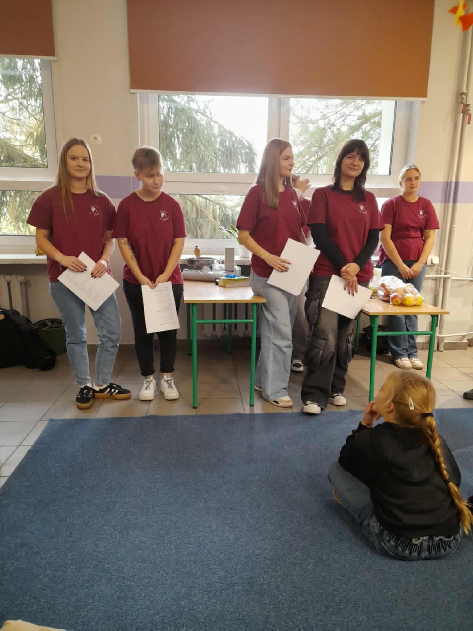 Następnie przyszedł czas na quizy i zagadki o tematyce żywieniowej – uczniowie wykazali się dużą wiedzą, a najlepsi otrzymali zdrowe nagrody 🎁. Było dużo śmiechu, rywalizacji i dobrej zabawy!