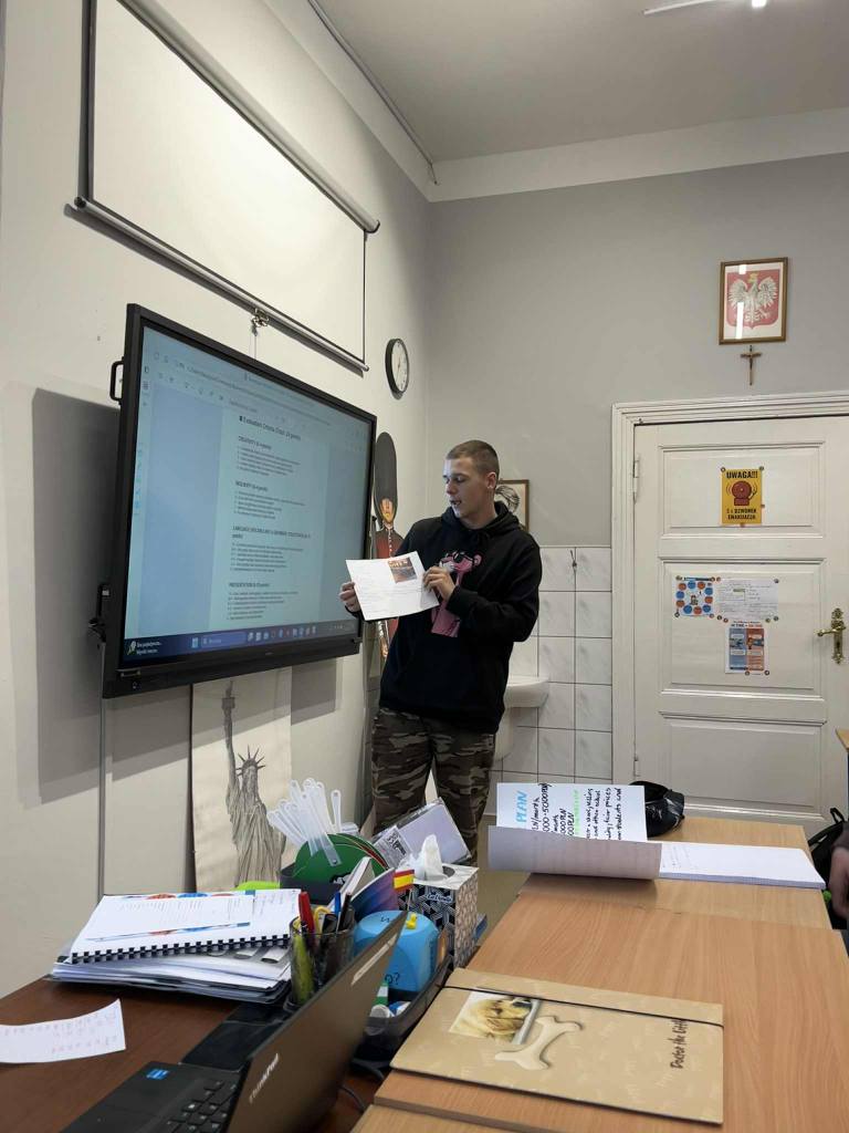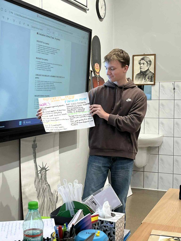 Zaproszony przez p. Iwonę Słomianowską-Mańkę gość, podzielił się swoją inspirującą historią, pokazując, że pasja, pracowitość i wiara w siebie prowadzą do sukcesu.