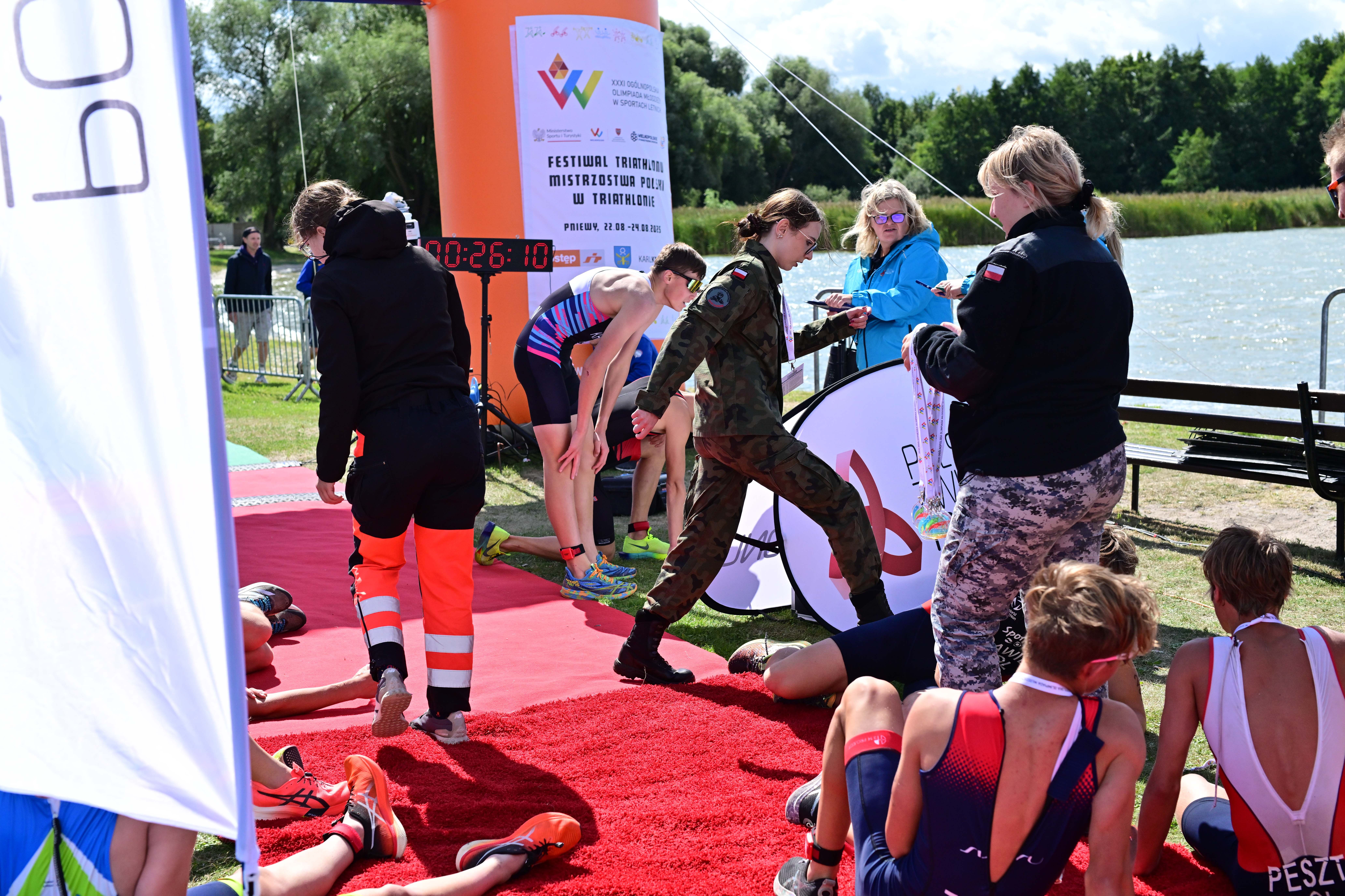 Do rozpoczęcia roku szkolnego był jeszcze cały tydzień, a już kadeci z kl. 3B i 4B poświęcali swój wolny czas i pomagali w organizacji zawodów triathlonowych MISTRZOSTW POLSKI SUPERSPRINT ORAZ OGÓLNOPOLSKIEJ OLIMPIADZIE MŁODZIEŻY W PNIEWACH, które odbywały się w dniach 22 – 24 sierpnia 2025. Kadeci z naszej szkoły wpierali zabezpieczenie trasy, podawali wodę zawodnikom, pracowali w biurze zawodów, a nawet wręczali medale. 27 września i 5 października kolejne zawody w naszym mieście do pomocy zapraszamy kadetów raz pozostałych uczniów. Zgłoszenia do dowódcy szkoły – Vanessy Nowak.