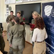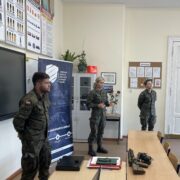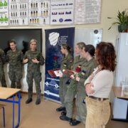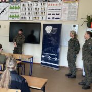 W czwartek 23 października na zajęciach szkolenia wojskowego kadeci z klasy III i IV mieli okazję spotkać się z żołnierzami nowotomyskiego Wojskowego Centrum Rekrutacji. Na spotkanie przybyli p. por. Dorota Kostańska z podwładnymi – p. kpr. Sławomirem Sobańskim i p. st. szer. spec. Romą Bąbelek.