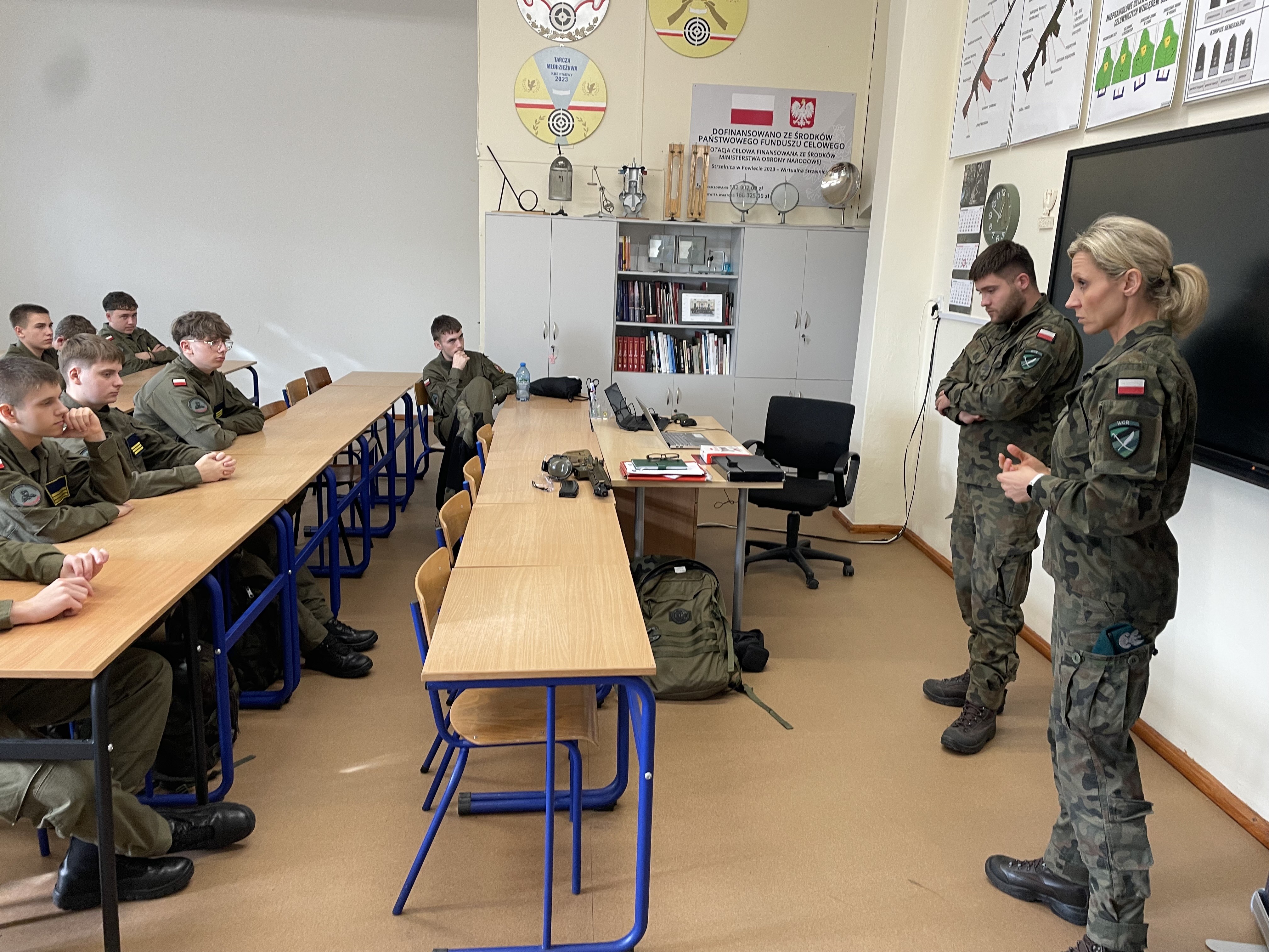 Tematem zajęć było szkolnictwo wojskowe. Kapral Sobański przedstawił 4 akademie wojskowe kształcące w Polsce oficerów Wojska Polskiego. Kadeci poznali specyfikę tych uczelni oraz zasady przyjmowania słuchaczy. Otrzymali też garść rad, jak najlepiej przygotować się do rekrutacji, w szczególności jak wykorzystać pozostały rok do wzmocnienia kondycji fizycznej i poprawić wyniki w nauce.